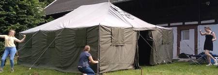 Die HuZ verfügt über eigene Zelte! Am Anreisetag werdet Ihr auf bereits aufgebaute Zelte treffen, denn wir werden euch das Haus schon am Tag zuvor gemütlich einrichten.
